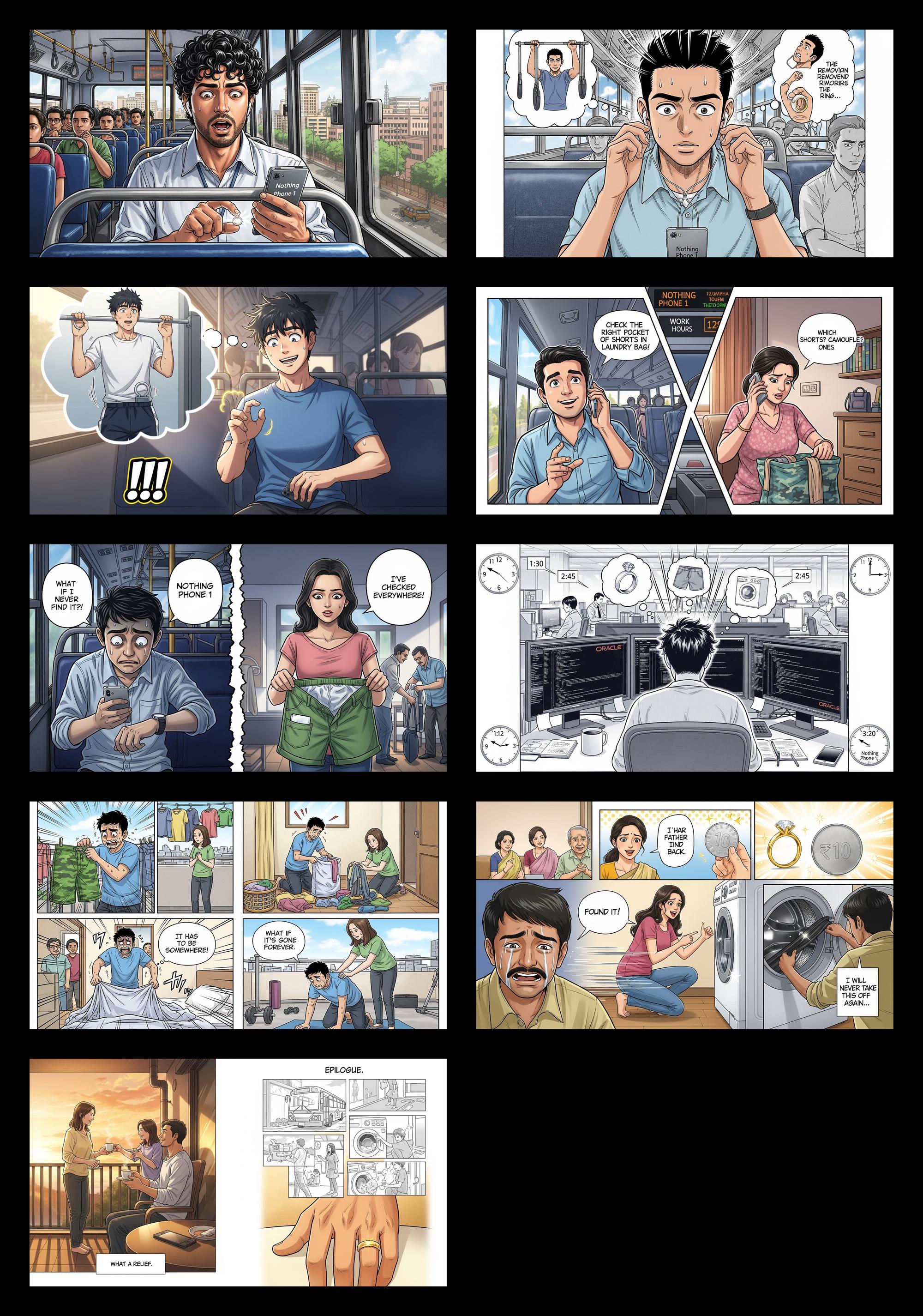 ಆದರೆ ನನಗೆ ತಕ್ಷಣ ಉಂಗುರ ಸಿಗಬೇಕಿತ್ತು, ಹಾಗಾಗಿ ನಾನು ತಕ್ಷಣ ಬಾಲ್ಕನಿಯಲ್ಲಿ ಹುಡುಕಲು ಪ್ರಾರಂಭಿಸಿದೆ. ಅಲ್ಲಿ ನನಗೆ ಎರಡು ಜೋಡಿ ಶಾರ್ಟ್ಸ್ ಸಿಕ್ಕಿದವು: ಒಂದು ಕ್ಯಾಮೋಫ್ಲೇಜ್ ಜೋಡಿ ಮತ್ತು ಇನ್ನೊಂದು ಹಸಿರು ಬಣ್ಣದ್ದು. ಹಸಿರು ಬಣ್ಣದ್ದನ್ನೇ ನಾನು ಹಾಕಿದ್ದೆ ಎಂದು ನನಗೆ ನೆನಪಾಯಿತು. ಆದರೆ ಎರಡೂ ಜೇಬುಗಳನ್ನು ಎಚ್ಚರಿಕೆಯಿಂದ ಹಲವು ಬಾರಿ ನೋಡಿದರೂ ನನಗೆ ಉಂಗುರ ಸಿಗಲಿಲ್ಲ. ನಾವು ಸಾಮಾನ್ಯವಾಗಿ ಬಟ್ಟೆಗಳನ್ನು ಒಣಗಲು ಹಾಕುವ ಮೊದಲು ಅವುಗಳನ್ನು ಕೊಡವಿ ಕೊಡುತ್ತೇವೆ. ಅದು ಬಾಲ್ಕನಿಯ ನೆಲದ ಮೇಲೆ ಎಲ್ಲೋ ಬಿದ್ದಿರಬಹುದು ಅಥವಾ ಬಾಲ್ಕನಿಯಿಂದ ಹೊರಗೆ ಬೀದಿಗೆ ಬಿದ್ದಿರಬಹುದು ಎಂದು ನಾನು ಭಯಪಟ್ಟೆ. ನನ್ನ ಭಯ ಹೆಚ್ಚಾಯಿತು. ನಾನು ಒಳಗೆ ಹೋಗಿ ಬಾಲ್ಕನಿಯಲ್ಲಿ ನನಗೆ ಅದು ಸಿಗಲಿಲ್ಲ ಎಂದು ಹೆಂಡತಿಗೆ ಹೇಳಿದೆ. ನಂತರ ನಾನು ಲಾಂಡ್ರಿ ಬ್ಯಾಗ್ನಿಂದ ಎಲ್ಲಾ ಬಟ್ಟೆಗಳನ್ನು ತೆಗೆದು ಕೆಳಗೆ ಬಿದ್ದಿದೆಯೇ ಎಂದು ನೋಡಿದೆ. ಅದು ಅಲ್ಲಿಯೂ ಇರಲಿಲ್ಲ.